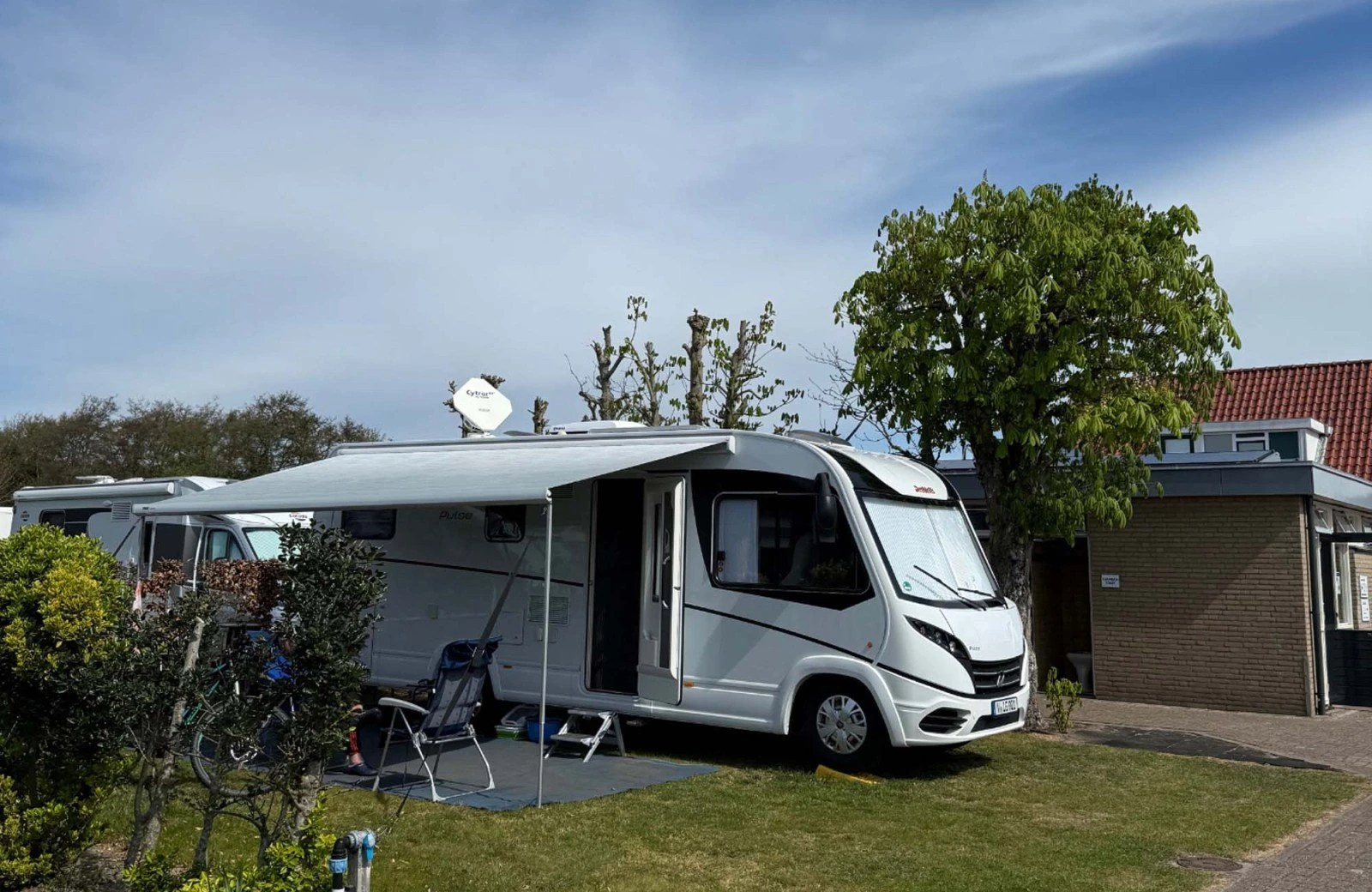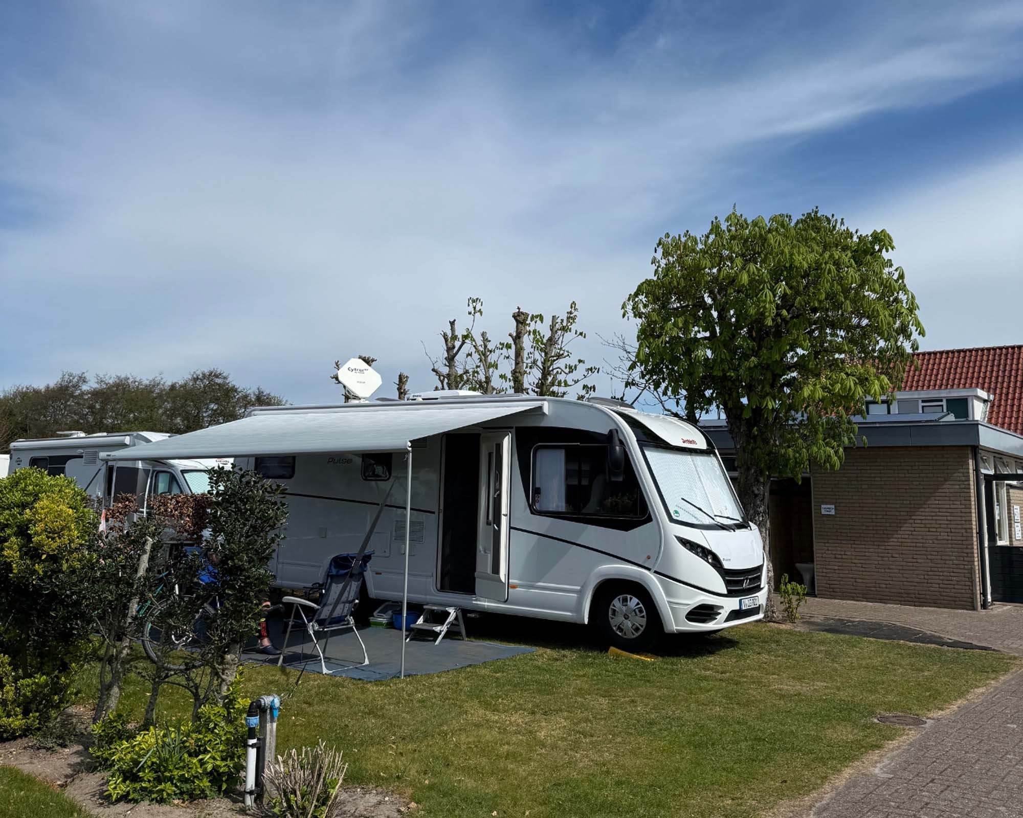 Geräumiger Campingplatz von mindestens 80 m², abgegrenzt für Privatsphäre und gelegen auf einem kleinen, verkehrsberuhigten Gelände.